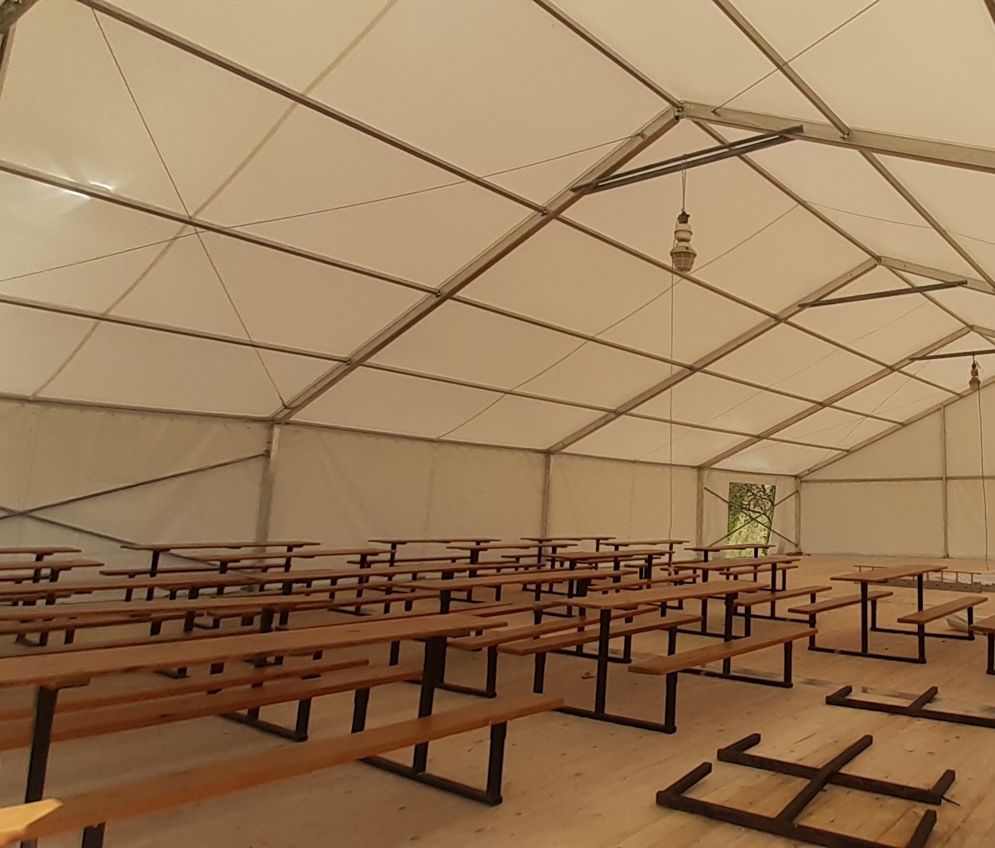 Stav: stan byl postaven pouze 2 ×, konstrukce a plachty nepoškozeny, vše téměř v novém stavu, stan složen v obci Slavičín, Hranice