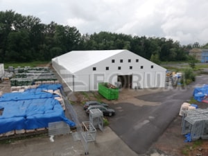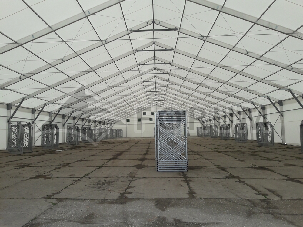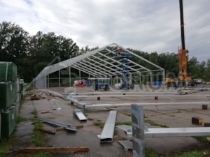 Vyrobili jsme stanovou halu o rozměru 30x80m, plocha 2400m2, šikmá stavební plocha!