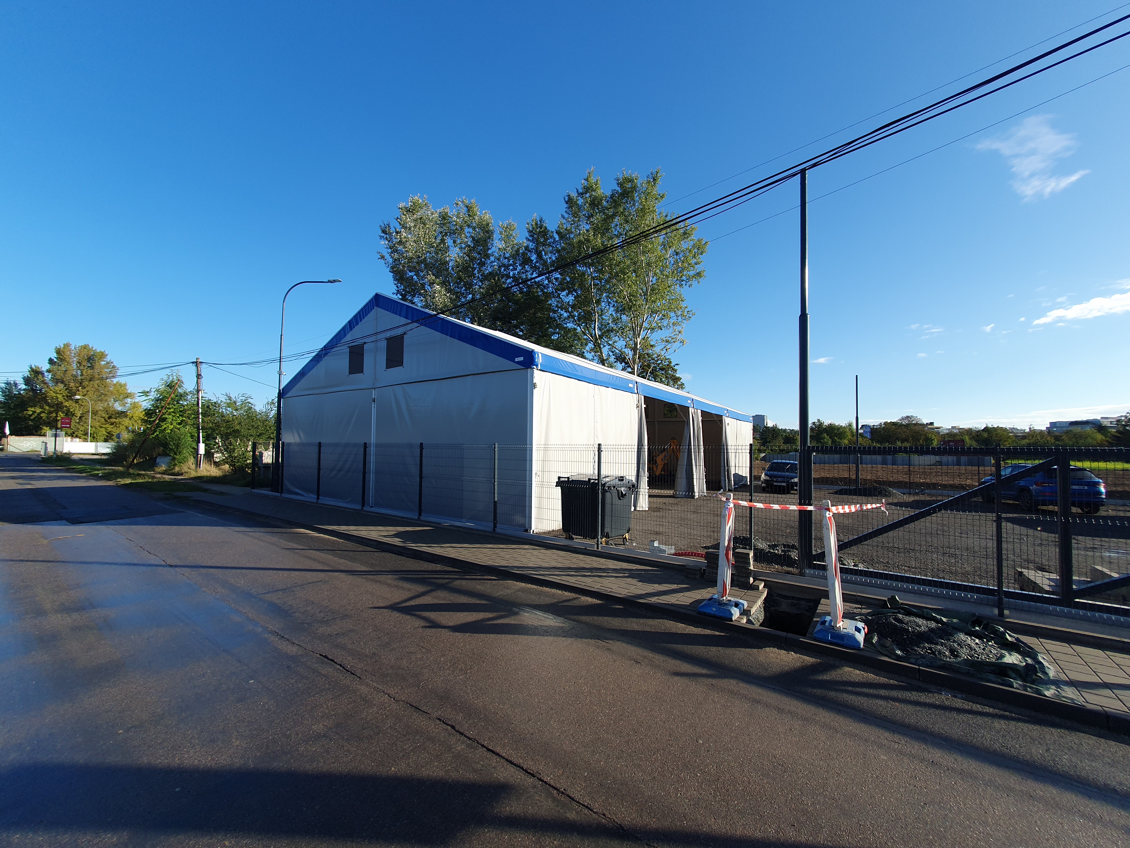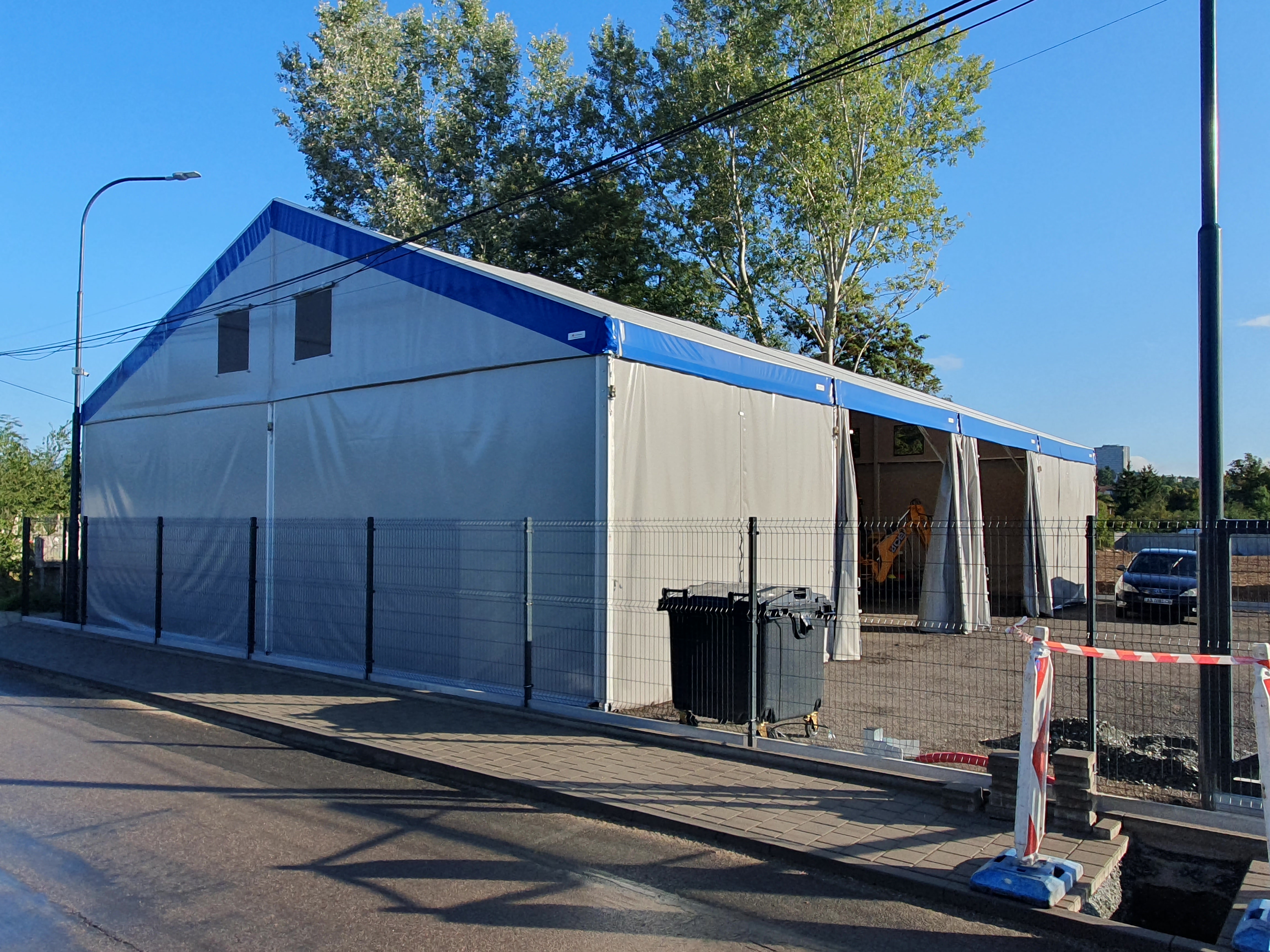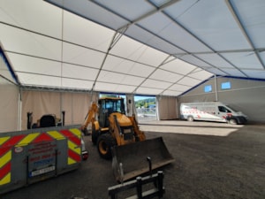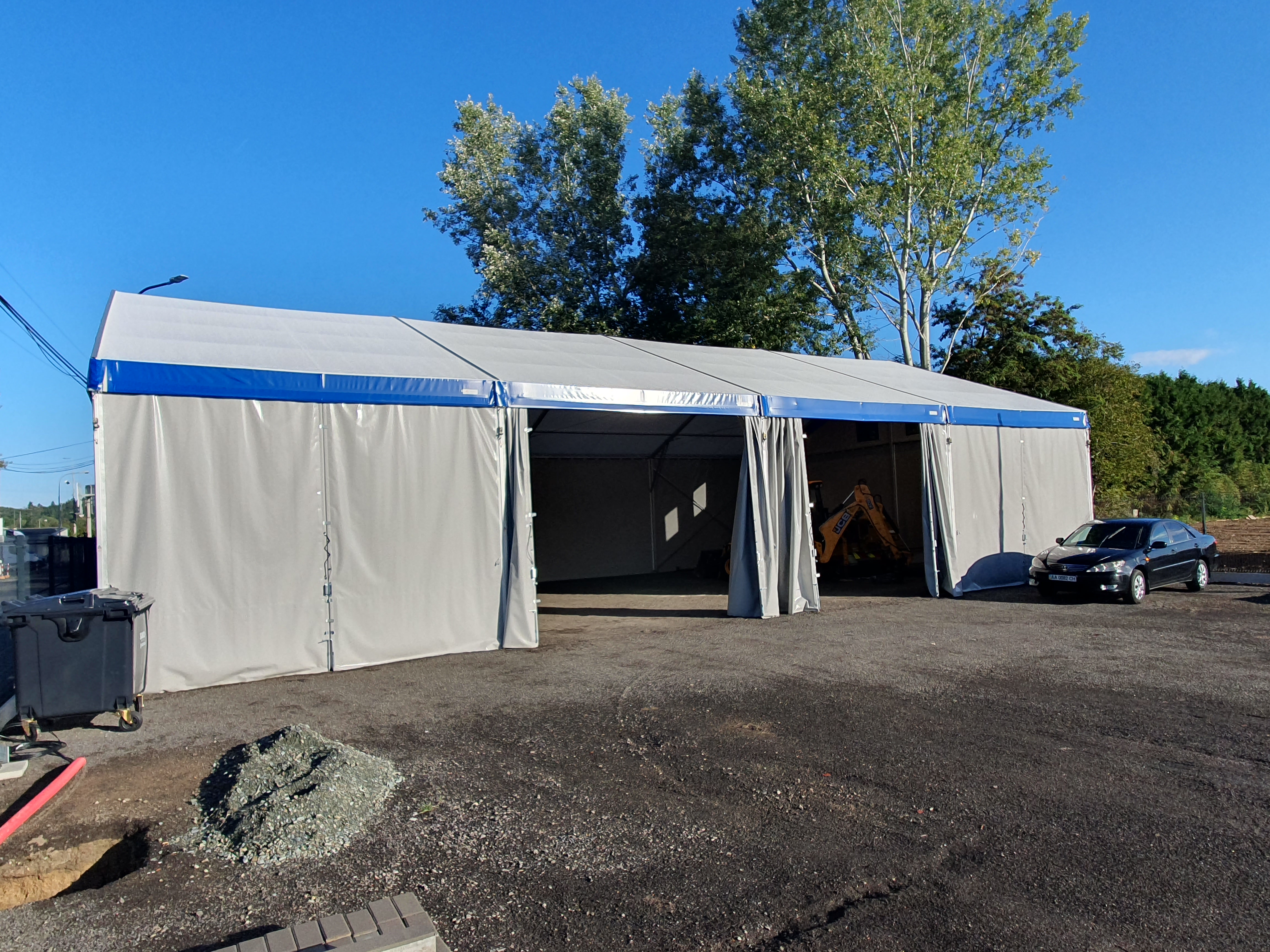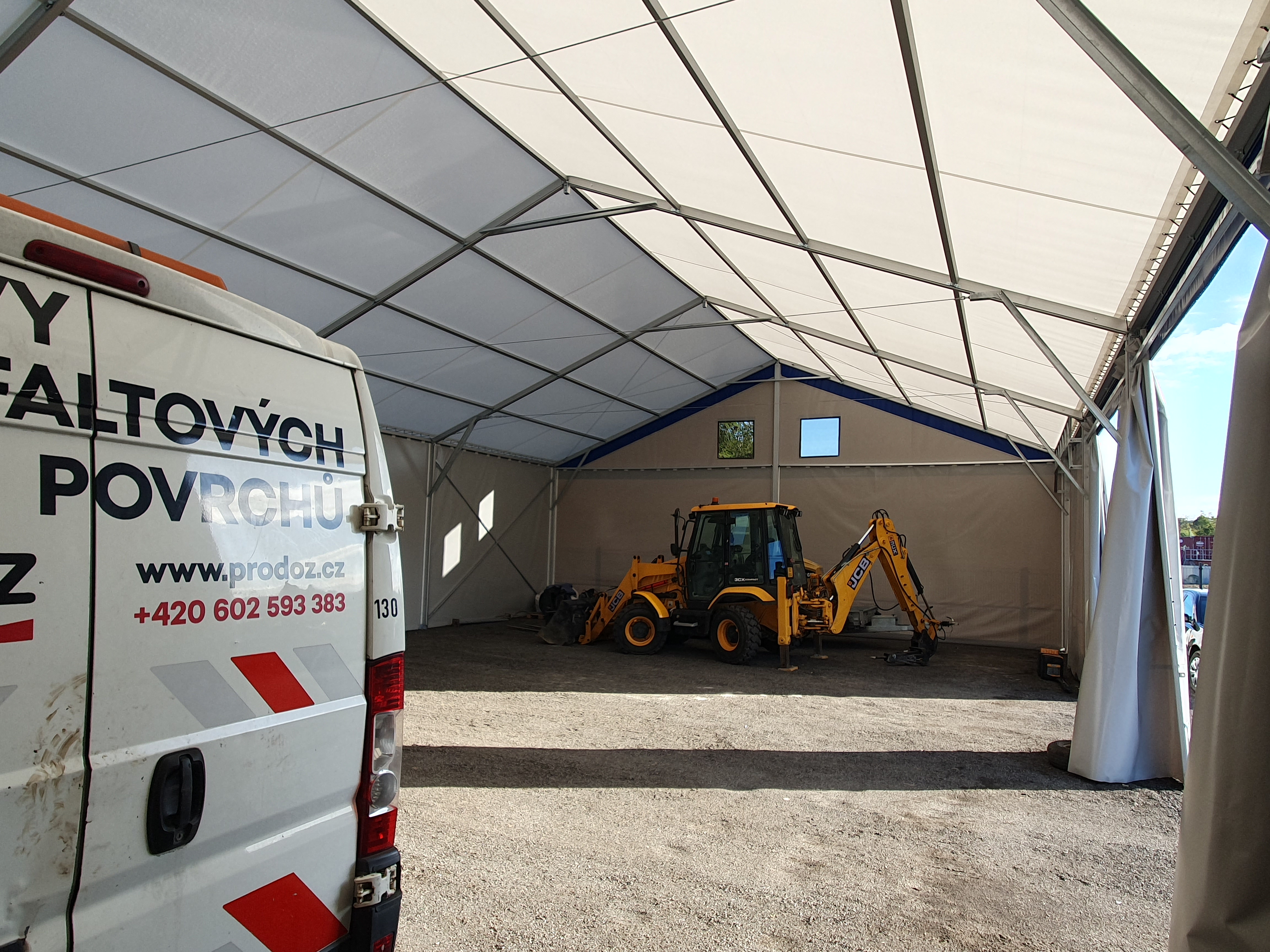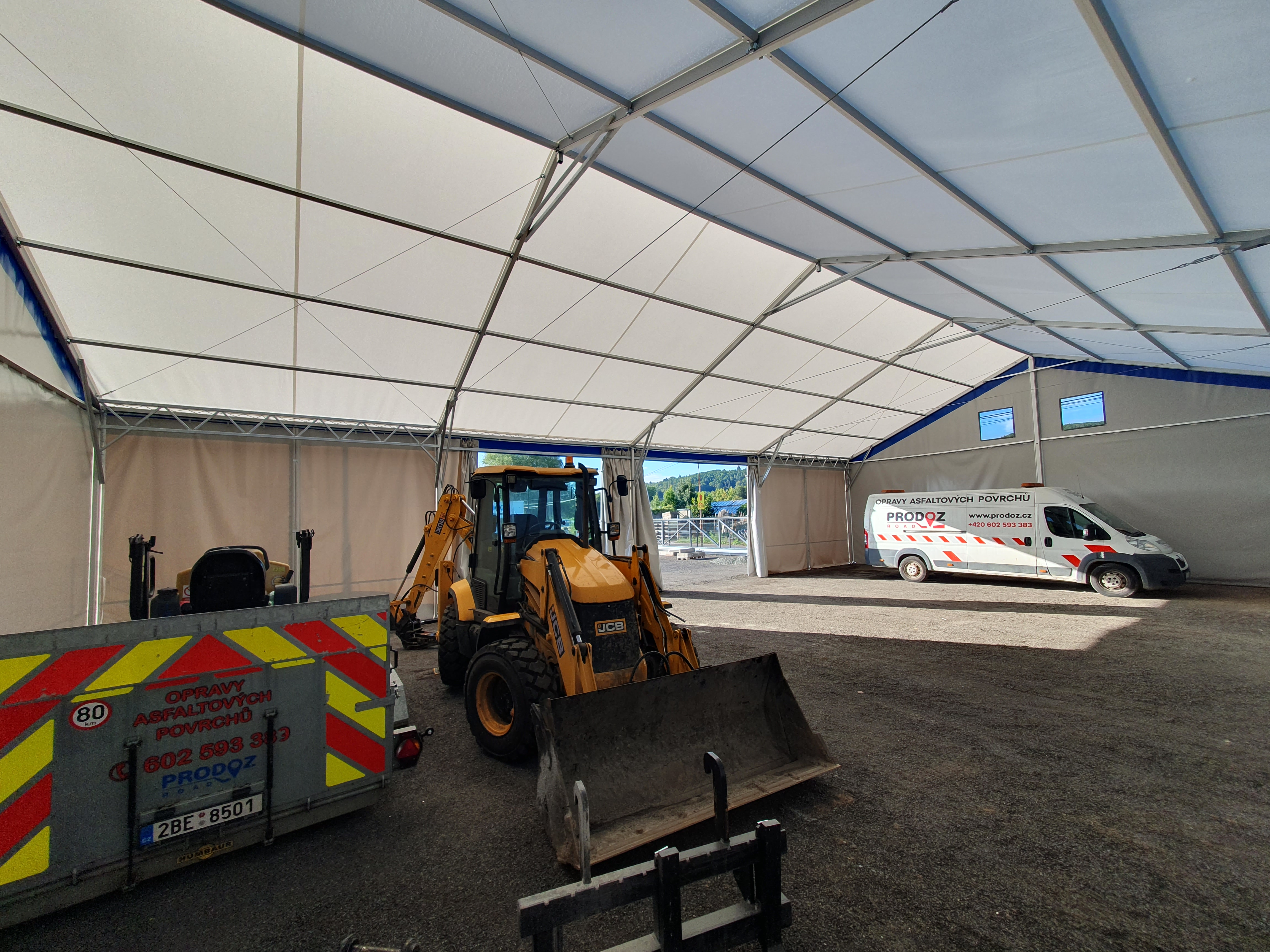 Stavební technika parkovaná ve stanu