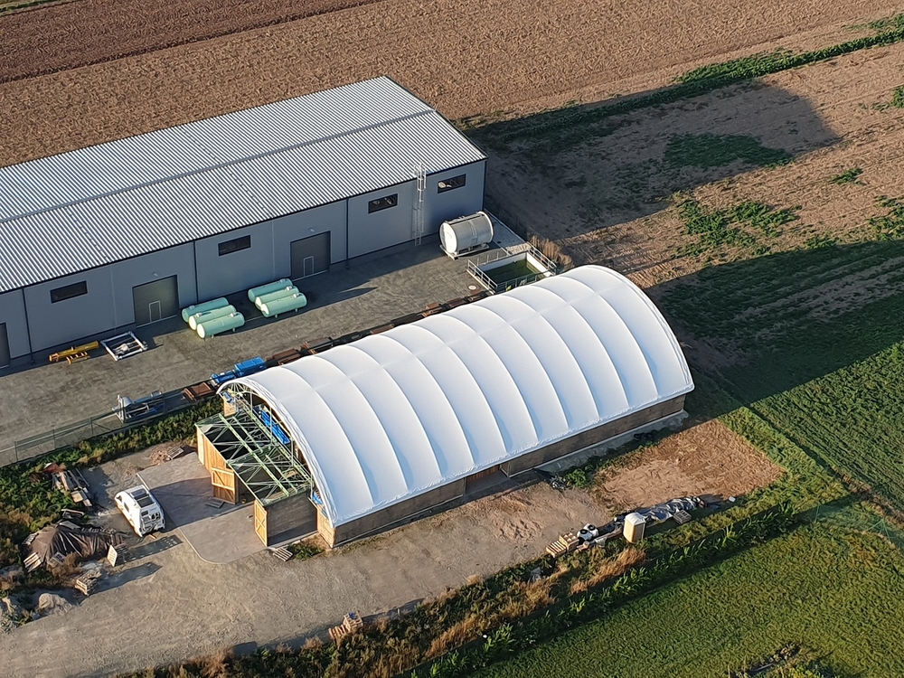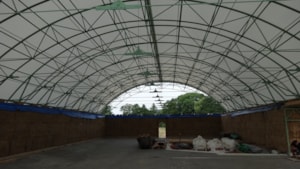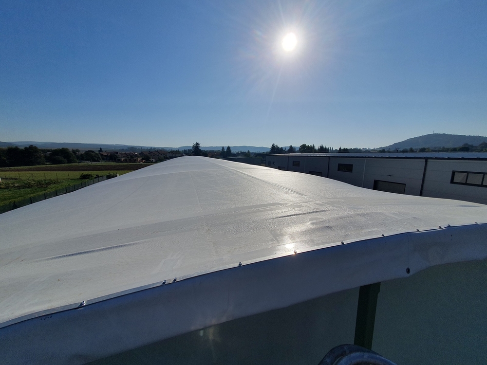 Velmi specifická stavba pana Navrátila z Drásova byla pokryta plachtovou střechou. Budova o půdorysu 20x30m se stěnami ze slámi a střešní ocelovou obloukovou konstrukcí. Po vzájemné konzultaci s klientem byl vymyšlen vypínací a kotevní systém plachtového opláštění. Použita nejvrcholovější plachtovina Serge Ferrari Flexlight Perform 702 S2 s životností přes 20let. Specifický vypínací systém vnitřních expandérů a lišt zaručuje absolutní předepnutí plachty ve všech částech střechy, štítů a portálově vysuvných čelních stříšek. Plachtovina tak zcela nahrazuje vlastnosti pevných střešních materiálu jako je například plech. Realizováno ke vší spokojenosti.